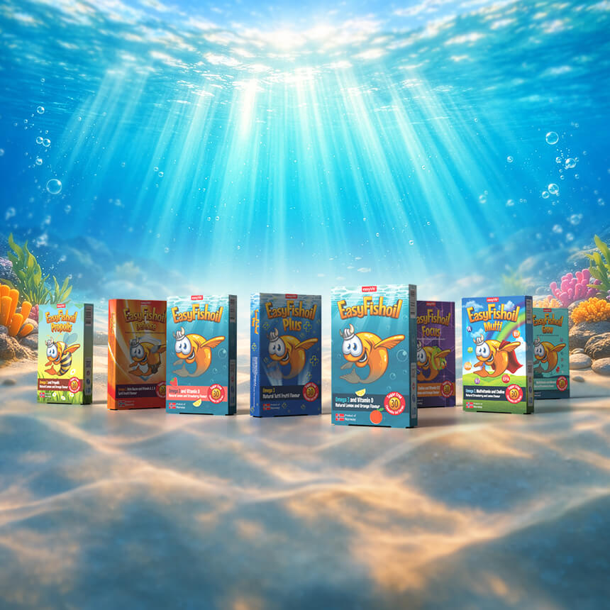 EasyFishoil Kids Line is delicious flavour, smooth texture and a chewable form kids love. Easy to take. Easy to love. EasyFishoil turns nutrition into a moment of joy: May I have one more?